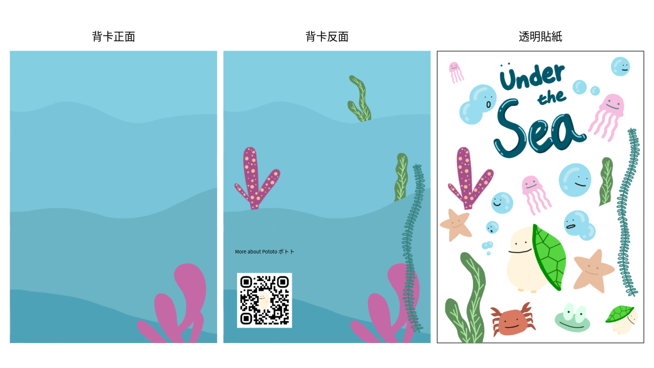 The inspiration of a sea version Pototo ポトト, came from one of my friends who enjoys diving. I want to tell people that it's beautiful under the sea and be aware to protect our mother nature.